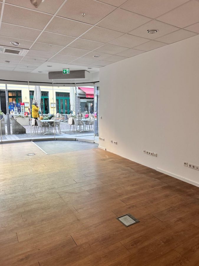 Als Kunde sowie als Mitarbeiter betreten Sie die Ladenfläche und werden von der Großen Fensterfront hin zur Fußgänger Zone begrüßt. Auf der Kundenfläche ist genügend Platz geboten um Ihre Ware attraktiv zu präsentieren.