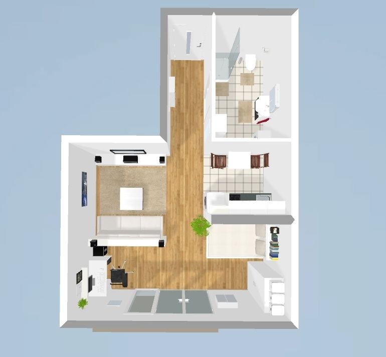 •1 Wohn-Schlafzimmer, 1 Koch- Nische, 1 Dielen, Keller, 1 Sonnenterrasse