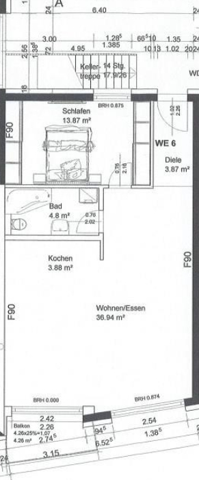 Die Wohnung empfängt Sie mit einer hellen Diele, welche dunkel verfließt worden ist - es folgen rechts das Schlafzimmer zum ruhigen Hinterhof, rechts von der Diele aus folgt ebenfalls das vollverflieste Duschbad. Von dieser Diele aus erreichen Sie Ebenfalls die offene Wohn-Essküche mit direktem Zugang zum Balkon.